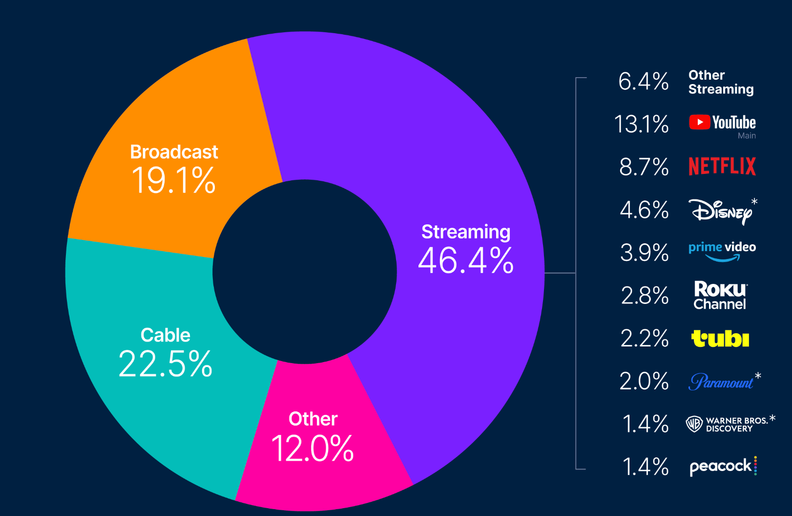 Aujourd’hui, YouTube est la plus importante plateforme vidéo au monde, avec plus de 2,5 milliards d’utilisateurs actifs par mois. Aux États-Unis, 46 % du temps passé devant du contenu télévisuel se fait désormais via des services de streaming, et YouTube domine largement devant Netflix, Disney+ ou Amazon Prime.