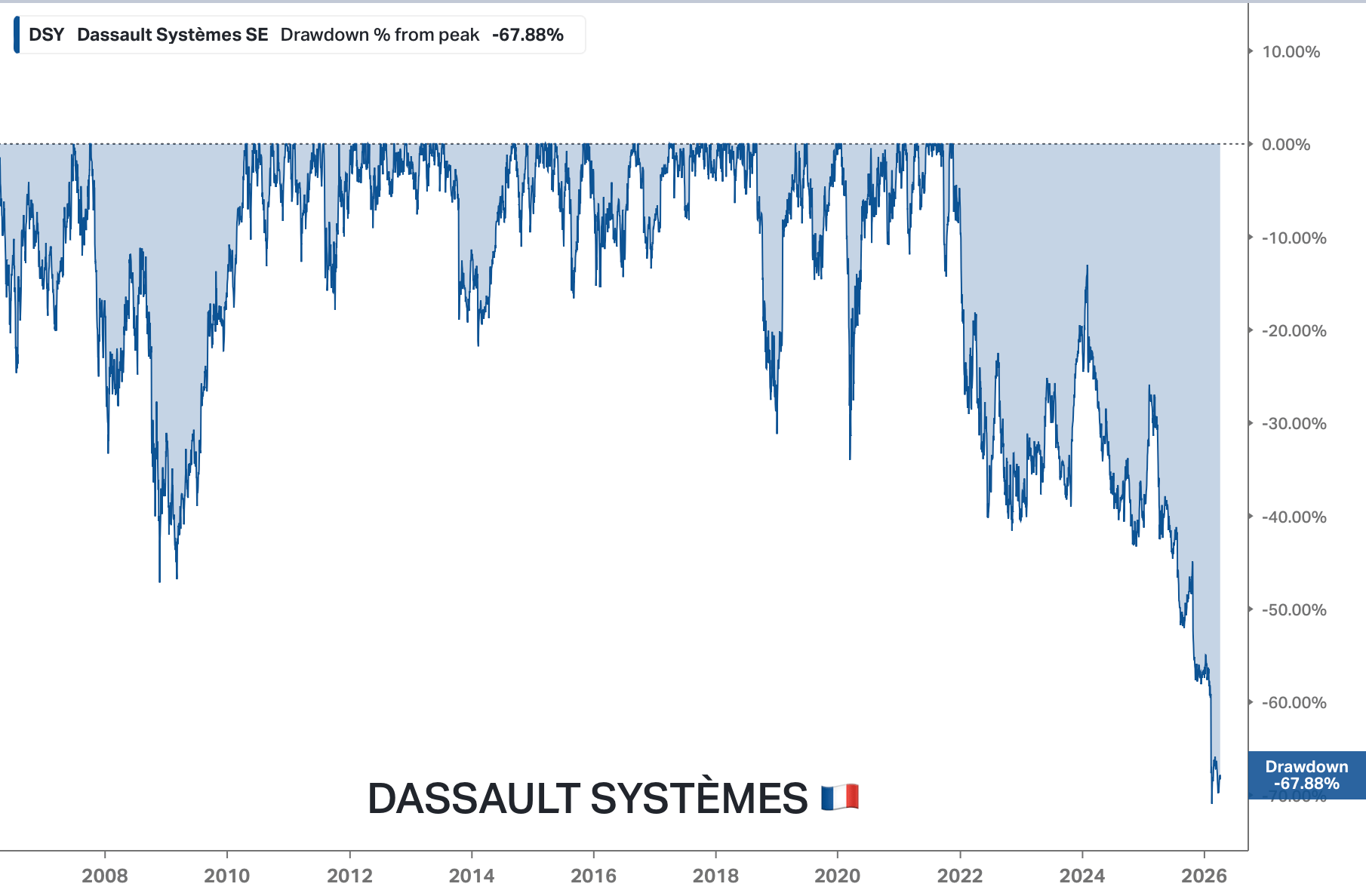 De plus, comme nous allons le voir, entre la menace de l’IA, la transition complexe du modèle de licence vers la souscription, un effet de change défavorable ou encore l’acquisition de Medidata qui déçoit les attentes, les raisons expliquant le repli de Dassault Systèmes sont multiples.