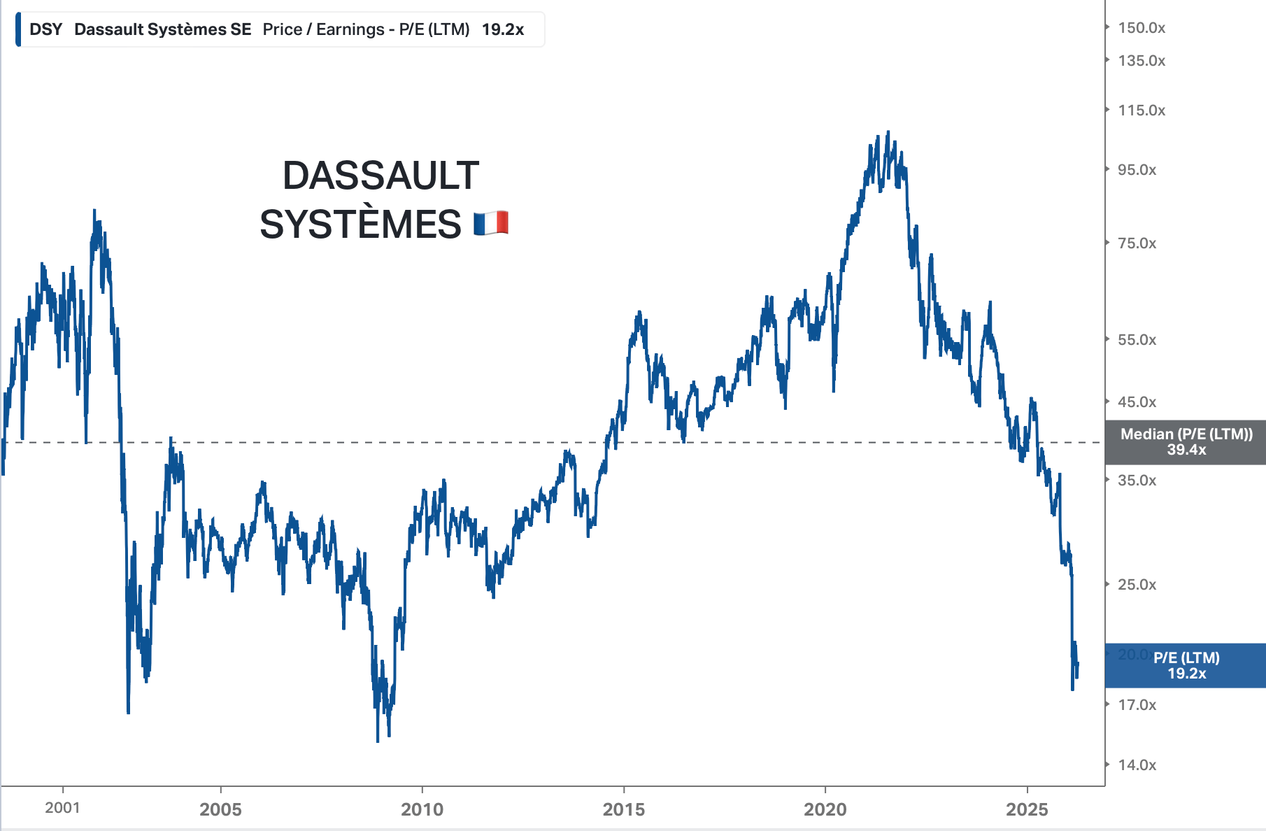 La réponse est non. Dassault Systèmes s’était payé jusqu’à 100 fois ses bénéfices dans l’euphorie post-Covid, pour une croissance de 12 à 15 %. Ces sommets étaient irrationnels et, aujourd’hui, avec un P/E de 19, le titre paraît presque bradé par rapport à son historique.