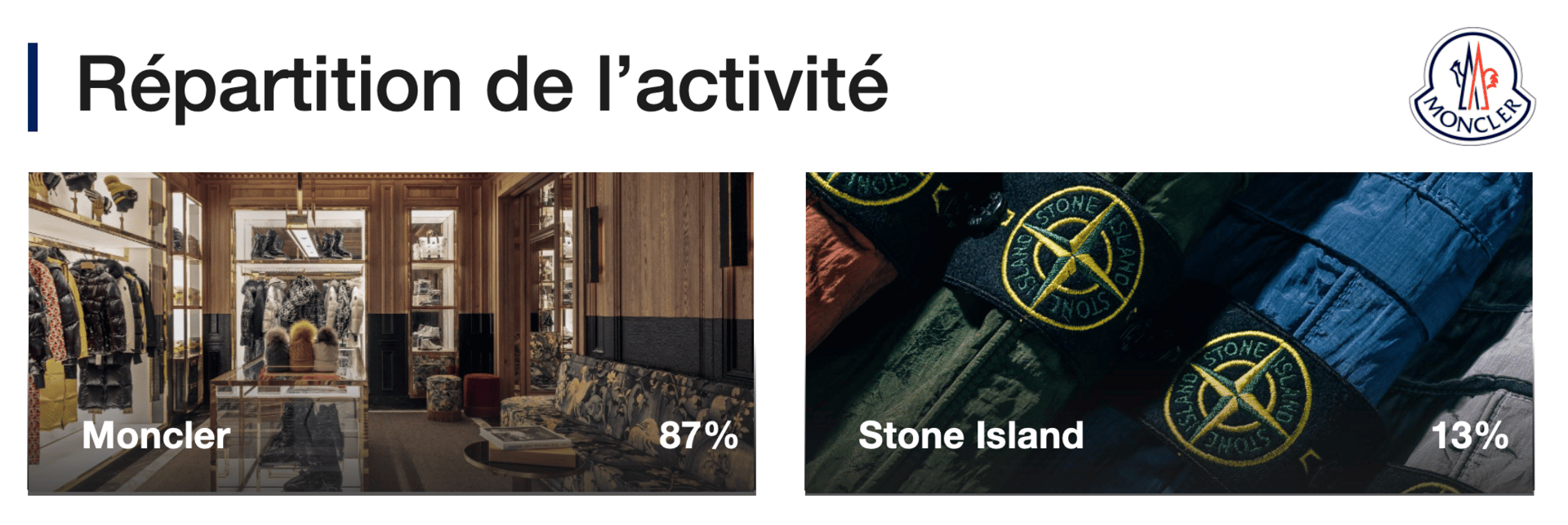Aujourd’hui, Moncler n’est plus une marque unique. Depuis l’intégration de Stone Island, le groupe s’articule désormais autour de deux marques distinctes. Cela étant dit, il est important de garder en tête que la dynamique du groupe reste très largement portée par Moncler.