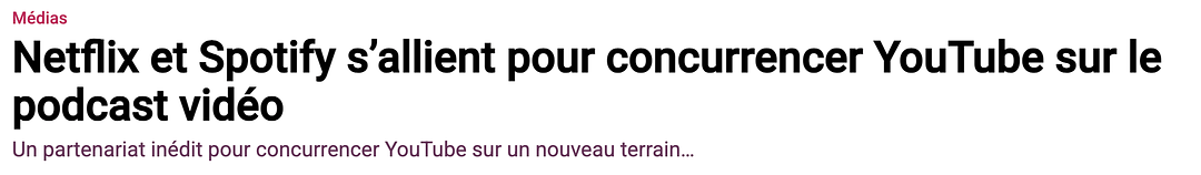 Tout d’abord, l’arrivée des podcasts vidéos originaux ont été annoncés ce trimestre. Netflix s’appuie sur des partenariats avec des acteurs reconnus comme Spotify/The Ringer, iHeartMedia ou Barstool, avec l’ambition de proposer à terme des podcasts sur l’ensemble des niches. Ils peuvent d’ailleurs nous contacter pour la Bourse, nous sommes ouverts 😅