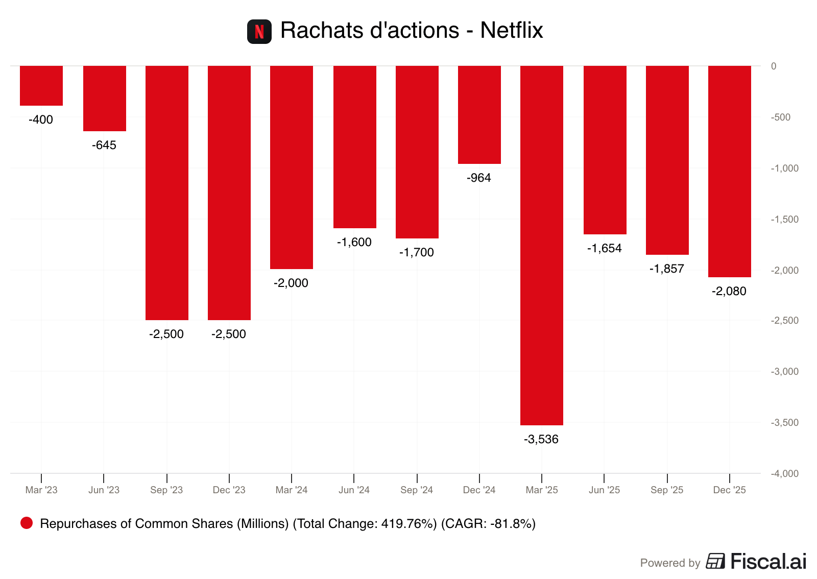 Cependant, acquisition oblige, Netflix a annoncé la suspension temporaire de son programme de rachats d’actions pour préserver et renforcer la trésorerie afin de financer l’acquisition de Warner Bros. Pas de surprise ici, c’est une décision tout à fait logique.