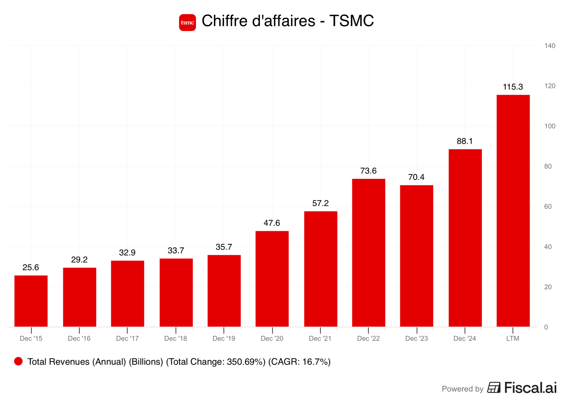 C’est une surprise pour personne, dans la guerre de l'IA, peu importe qui gagne (Nvidia, AMD ou Intel), tous ont besoin de TSMC pour fabriquer leurs puces. Ils ont une part de marché écrasante sur les nœuds de gravure avancés (3nm et bientôt 2nm).