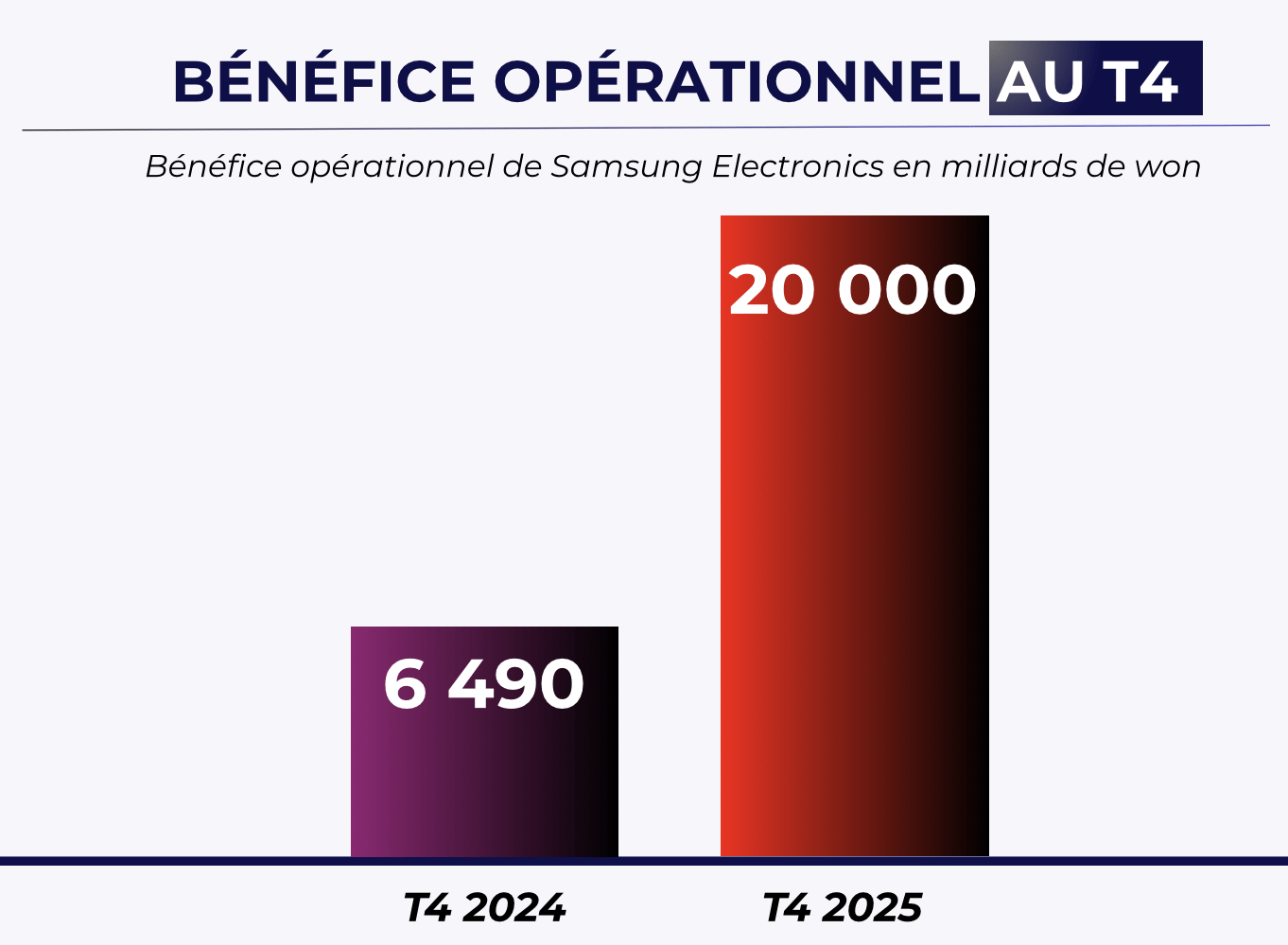 Le chiffre le plus marquant de cette publication concerne le bénéfice opérationnel. Le géant coréen estime avoir généré près de 20 000 milliards de wons sur le trimestre, soit environ 12 milliards d’euros. Pour mesurer l’ampleur de la performance, cela représente une hausse de plus de 200% par rapport à la même période de l’année précédente.