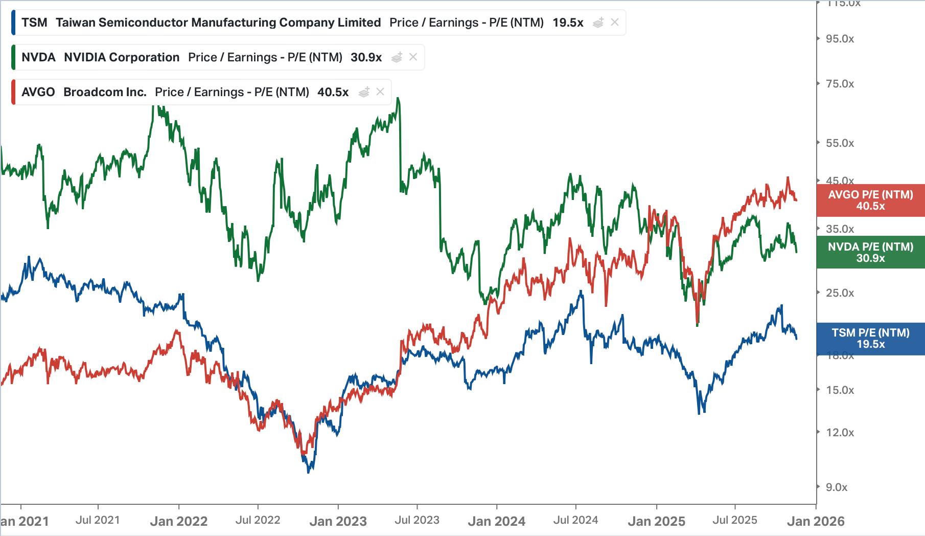 PER de Broadcom vs Nvidia vs TSMC