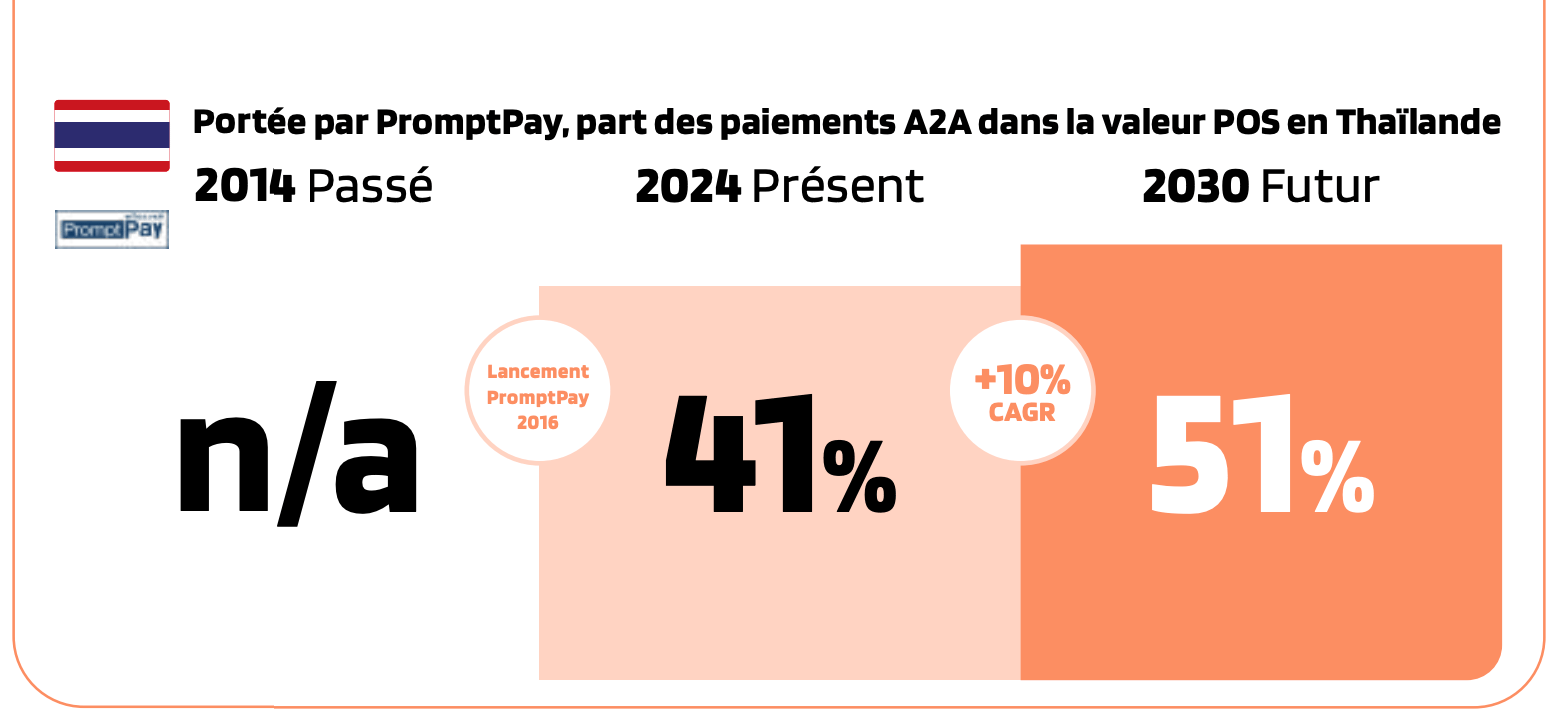 Au-delà de l’Inde et du Brésil, d’autres pays ont déjà connu de véritables succès. C’est le cas de la Thaïlande avec PromptPay, lancé en 2016. Le système s’est imposé comme un pilier du paiement numérique. En 2024, il représente 41% des volumes de paiements en magasin. Si vous êtes déjà passé par la Thaïlande, vous ne pouvez pas l’avoir manqué.
